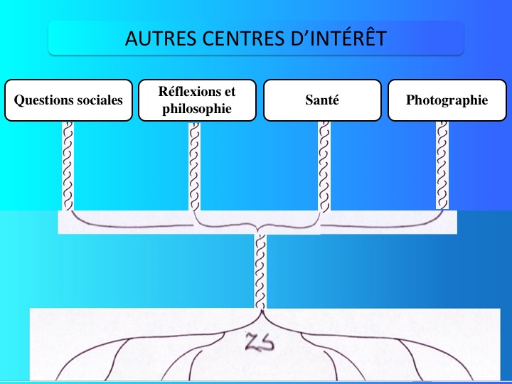 Voici un tableau avec des rubriques indiquant mes activités principales . Les liens pour y accéder sont à la suite (plus bas, vous trouverez les autres activités, aussi sous forme d’arbre).