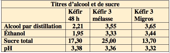 Les mesures ont été faites par une température de 20 °C et pour 100 ml de kéfir.