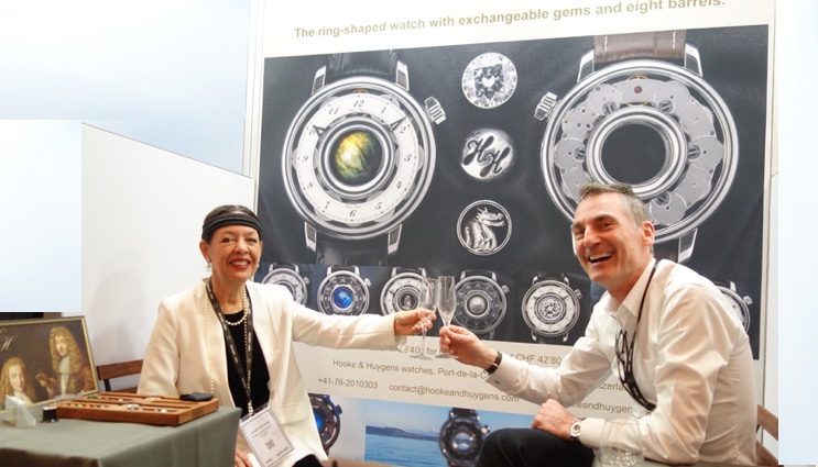 Rogers watch is special, it is a ring shaped one, an annular watch (see pictures at right and left on the picture above). It is the first time in the history of horology that such a feat has been achieved ! Those who visited the stand found ingenious its shape, the way the hands move as well as its week-long power reserve. As the middle is empty, like a real ring, it is possible to decorate the watch with personal gems or sculptures that one can easily exchange.