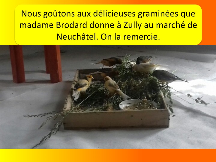 Lorsque les choses se lient les unes aux autres, comme dans le cas présent, c’est pour moi un signe indiscutable du fait que je suis au bon endroit et au bon moment. C’est comme si les dieux avaient envoyé plusieurs messagers pour me faire comprendre que le ciel avait ouvert ses portes à madame Brodard… mes canaris et moi lui devons tellement…