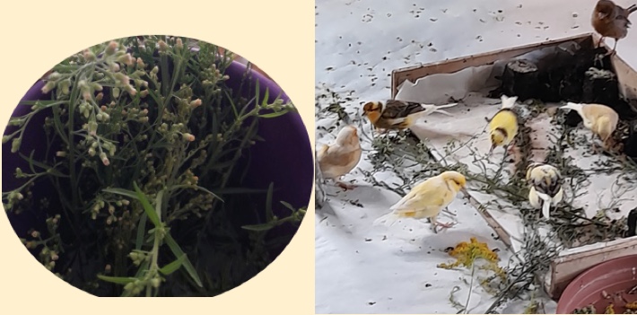 - je me promène toujours avec une paire de ciseaux parce que j’ai une grande volière avec des canaris et qu’ils raffolent de graminées et autres fleurs sauvages. Je n’arrive plus à les retrouver et c’est Julien, qui fait office de cuisinier, qui me prête les siennes. Ouf ! Je peux rentrer tranquille et apporter des herbes clunysoises que mes oiseaux vont transformer en chants !