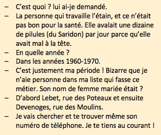 - à un moment donné, j’étais en attente de quelque chose et une dame de la résidence s’approche. Je me dis qu’on va parler. Elle me raconte sa vie et lui dis qu’elle pourrait voir certains épisodes d’une autre façon et que les miracles qui m’avaient accompagnée devaient avoir un sens. Elle finit par me remercier parce qu’elle n’aurait jamais pensé à cela. Je lui dis qu’en fait, je n’ai fait que prononcer les mots qu’elle n’arrivait pas à se dire ;