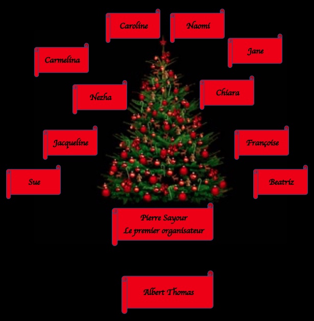 L’Histoire. Sans elle, il n’y a rien. On le voit, sans Albert Thomas, pas de Pierre Sayour et sans lui pas de fête. C’est aussi le moment d’expliquer que bien d’autres personnes font partie ou ont fait partie de l’organisation de la fête sans que leur nom apparaisse ; mais ils sont à l’intérieur de l’arbre ; de même que celui des nombreux fils, filles et maris d’employées du BIT qui ont aussi été parties prenantes pour tout mettre en place. Toutes ces personnes, absolument toutes, sont des cadeaux pour les autres.