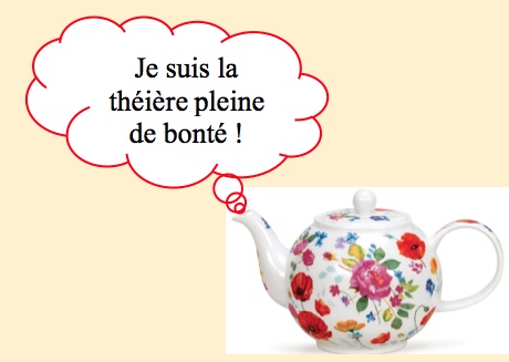 La bonté. C’est parce que je lui faisais voir combien elle était au-dessus de toutes ces choses-là qu’elle m’a dit qu’un client lui avait dit qu’elle était comme une théière : pleine de « bon thé » (bonté). Ah, j’aimerais bien connaître ce client si imaginatif. C’est tout simplement magnifique.