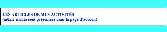 Mes activités par ordre alphabétique, mais d’abord, un mot à leur sujet :