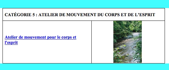 Liens : Atelier de mouvement pour le corps et l’esprit – Apport des participants–
