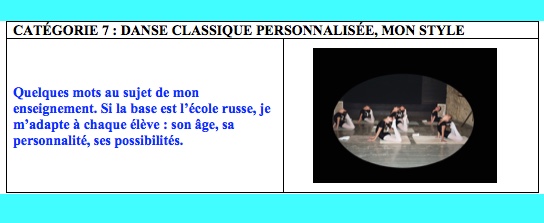 - Danse classique personnalisée. Voir les liens des sous-rubriques, en bas, dans la liste illustrée : 7. Mon style ; 7.1 Photos – cours danse et imagination – Fête de la danse – tournées 2023 – Spectacles ; 7.2 Dialogues et commentaires ; 7.3 Une série d’articles consacrés au studio la « Cave perdue ».